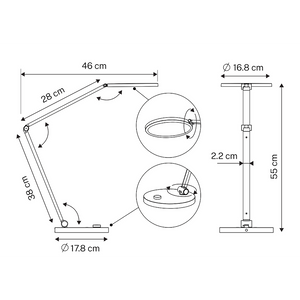 • Design : De rundade formerna på huvudet och den tillhörande basen, tillsammans med armens finhet, ger en modern och minimalistisk känsla till ditt utrymme.